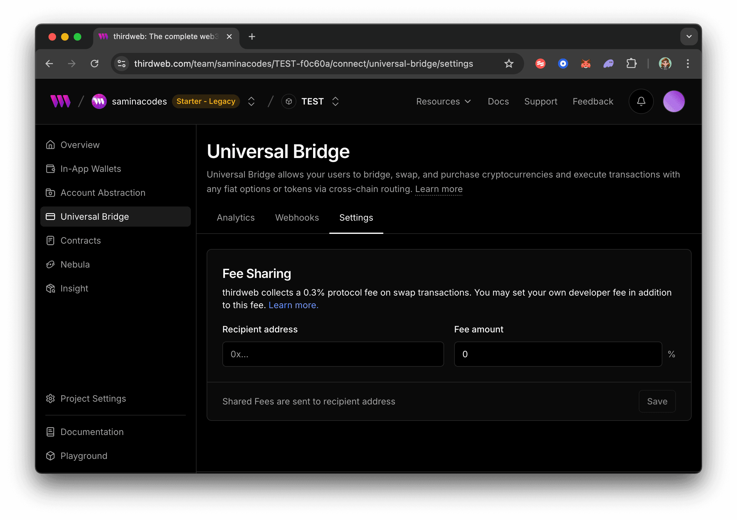 To monetize applications or games, you are able to set a developer fee on each crypto-to-crypto or swap transaction. You may set this percentage through Project > Payments > Settings.